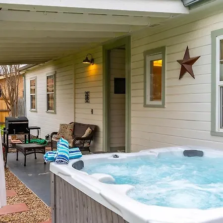 **Longhorn Lodge - Fire Pit & Hot Tub Fredericksburg** invites guests to a serene escape nestled in the Texas Hill Country. Just a scenic drive of approximately 100 km from San Antonio International Airport, this captivating retreat provides the perfect blend of modern comfort and rustic charm. The lodge's inviting atmosphere immediately engages visitors with its cozy fire pit and rejuvenating hot tub, making it an ideal spot for relaxation and social gatherings.